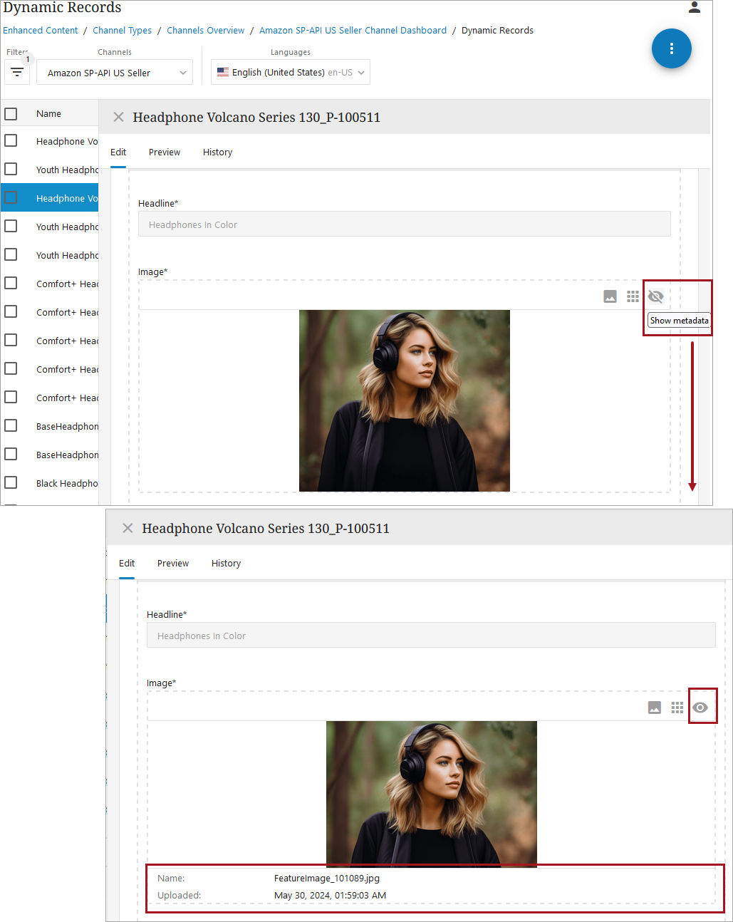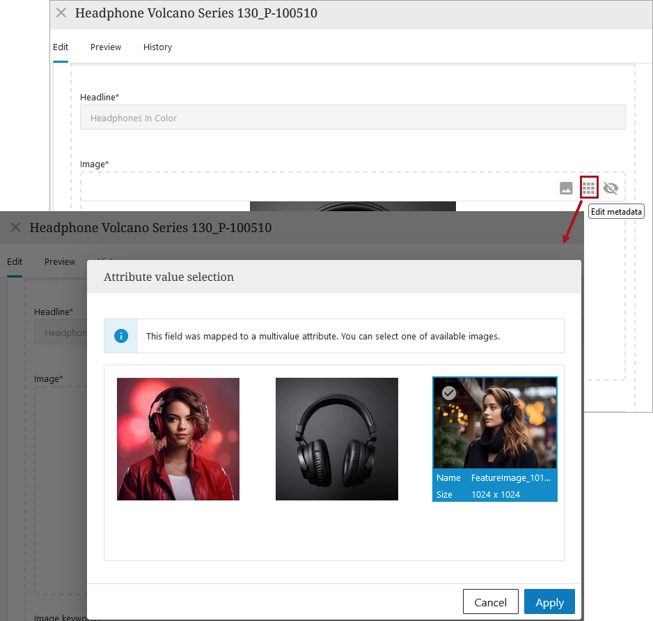 For images that are multivalued composite attributes, the user is able to choose a specific picture to display for the individual record by clicking the Edit metadata icon.