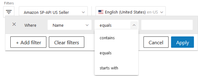 This renders the Filter dropdown dialog that enables users to add as many filters as needed to display a refined list of enhanced content records.