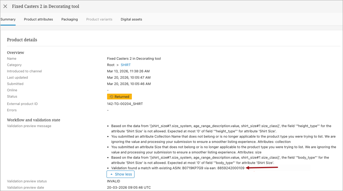 If a product in PDX matches an existing Amazon product (for example via EAN/UPC/GTIN), the match is now detected and reflected during validation.