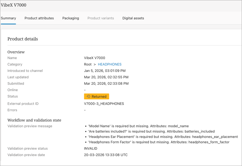 The Amazon channels provide users the ability to validate Amazon products against Amazon's validation service. This function includes a validation message in PDX on the product summary page.