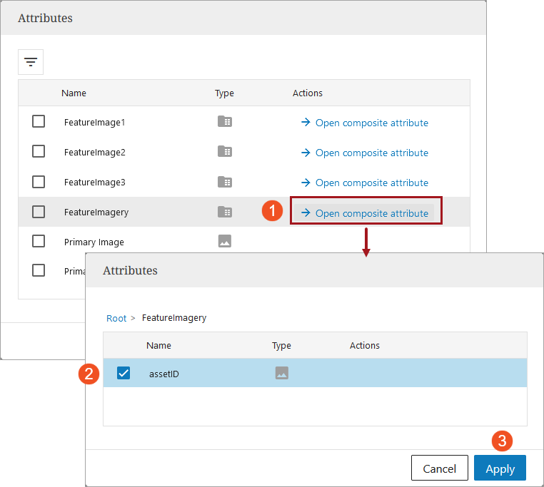 Click the link for the multivalued composite attribute, select the desired attribute, and click Apply.