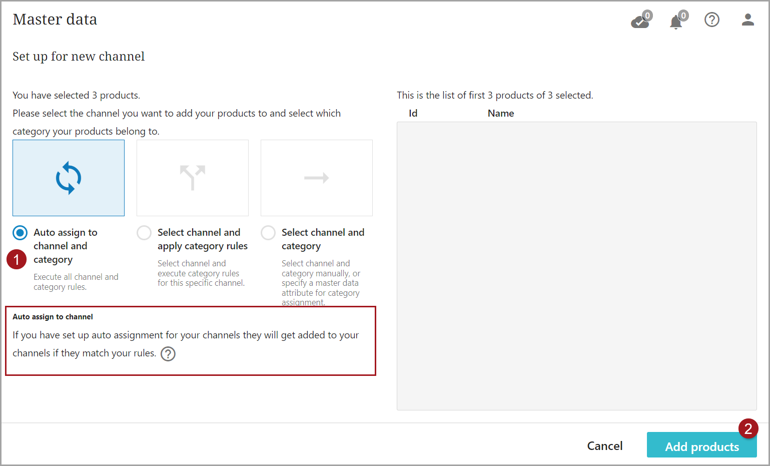 • All checked products that meet the parameters of the category rule(s) created will be added to the channel selected.