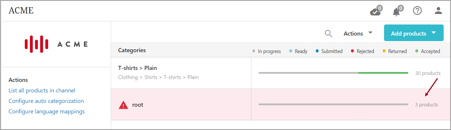 • All products selected in master data that meet the specifications of the channel rule can be added to the Acme channel by applying the channel rule.