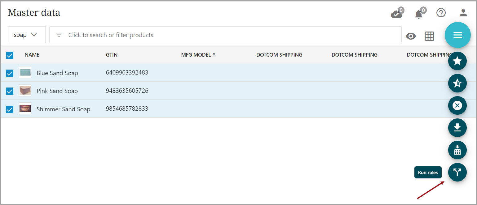• All products selected in master data that meet the specifications of the category rule can be added to a channel's 'Soap' category by applying the category rule.