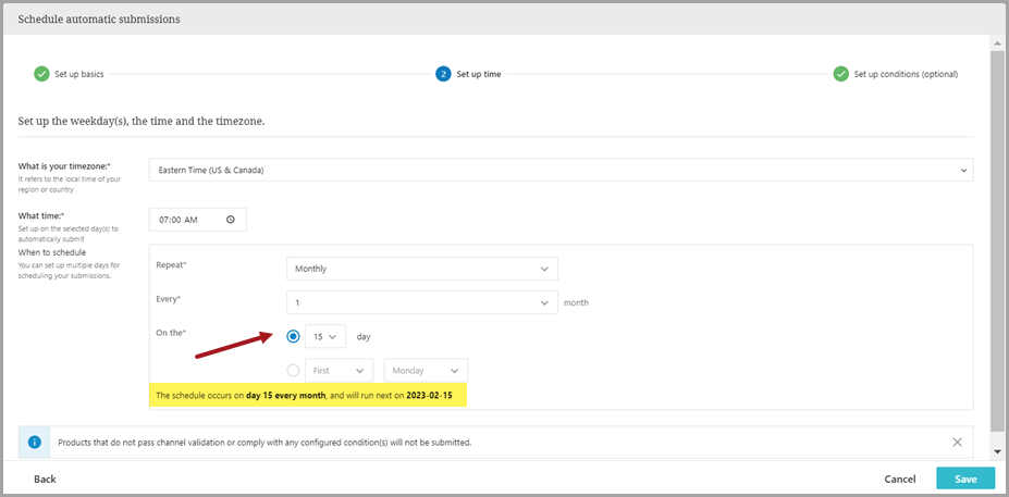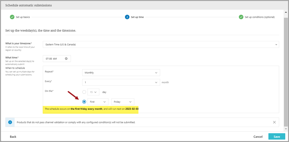 Note: Products that do not pass channel validation or comply with any configured condition(s) will not be submitted.